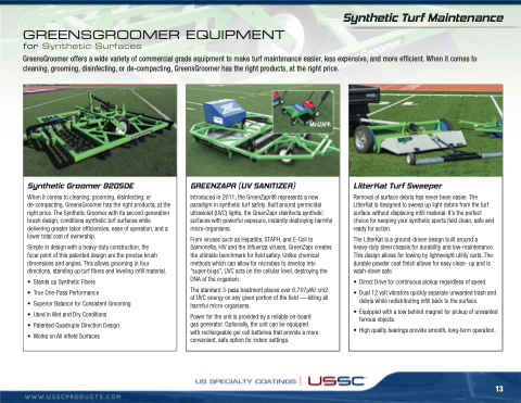 When it comes to cleaning, grooming, disinfecting, or de-compacting, GreensGroomer has the right products, at the right price. The Synthetic Groomer with its second generation brush design, conditions synthetic turf surfaces while delivering greater labor efficiencies, ease of operation, and a lower total cost of ownership.