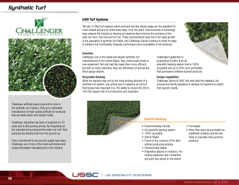 Challenger Sports & USSC will work with the installers, the schools and facility operators to develop turf systems to match their specific needs.