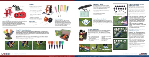 Measuring Tapes%u2022 Durable, long-lasting, vinyl-coated fiberglass tapes in ABS shatter resistant case.%u2022 Closed reel tapes feature an easy to wind, flush-folding handle.%u2022 Open reel tapes feature easy to wind return, handle and shoulder strap.%u2022 Printed with inches/feet on one side and centimeters/meters on the other.%u2022 Includes end-loop for one-person measuring.MarkSmart TM(Soccer)An ideal tool for Band Lining Set or setting Football Practice. Mark boundary lines, goal lines, ten yard lines and hash marks. Set comes complete with 30 sockets with plugs along with installation accessory kit.%u2022 Set boundary lines, goal lines, every ten yard lines and hash marks.%u2022 Great for band practice fields as well.%u2022 Set includes 30 sockets with plugs.%u2022 Installation accessory kit.Newstripe ( 25 Pc.Soccer ) or ( 50 Pc. Football ) Layout SystemThe SafeMark%u2122 basic sets layout principle markings of a playing field. Additional markers can be used to locate lines for coaches, team, penalty areas and more. %u2022 Easy %u2013 Simply locate center line of corners or side lines. Use the included auger and then insert the SafeMark%u2122. Pliable anchors wedge markers in place. %u2022 Safe %u2013 Unlike hard plastic markers, athletic shoes and cleats will not skid or catch on the SafeMark%u2122 markers. Plus, they have no surface holes to trip players or fill with debris.%u2022 Indestructible %u2013 Made from UV protected PolyFoam and come with a three year warranty.%u2022 Set Includes: 25 Markers with anchors, installation auger, 600 feet of layout twine and 4 stringing spikes.ProLine TM( 25 Pc.Soccer ) or ( 50 Pc. Football ) Layout SystemNewstripe%u2019s ProLine%u2122 Soccer Field Layout Systems is the simplest, easiest and lowest cost way to keep your athletic fields marked, year after year. Just drive the rugged nylon locators into the ground at key field positions, attach the supplied string line to the locators and you%u2019re ready to stripe your field. The locators are permanently left in place so you can precisely remark your field year after year, yet you only need to measure once. %u2022 Safe %u2013 Unlike others, ProLine%u2122 Locators have no open holes to catch players%u2019 shoe cleats or fill with debris.%u2022 Easy to use %u2013 Just attach the guide cord between the locators and start striping you field. Unlike other locators, the ProLine%u2019s%u2122 unique one-piece design eliminates any additional pegs or plugs to loose or forget.%u2022 Quality %u2013 Proudly made in the USA, Newstripe ProLine%u2122 products are backed by a 18 month limited warranty.%u2022 Inexpensive %u2013 Compared to other available products you will save 40 percent or more.Set Includes: 25 Markers, installation starter tool, and 600 feet of layout twine50%u2019 - 15M 100%u2019 - 30M 165%u2019 - 50M200%u2019 - 60M 330%u2019 - 100M400%u2019 - 122MMarking WhispersVirtually indestructible, these APWA color-coded Marking Whiskers spring back up when run over by lawn mowers, graders and heavy equipment. They are easily and conveniently attached to wood stakes or to 60-penny nails (not included). Use them alone or in conjunction with other marking products.LineMate%u2022 Designed to help outline the base paths for baseball and softball fields%u2022 Permanent marks on the cable at 45 ft., 60 ft., 90 ft. and 127.28 ft. help you find the right location for all three bases%u2022 130 ft. cable outlines key portions of the field, extending as far as home plate to second base, while a 240 ft. cord delivers extra length for mapping out foul lines%u2022 Hammer and two spikes are included for setting the cord into place%u2022 Lightweight design is easy to bring out to the field and back into the equipment closetCord & Reel%u2022 High impact plastic reel.%u2022 740%u2019 of heavy duty nylon twine.%u2022 10%u201d steel spike.PLeeFiX%u2122 Ground MarkersThe PLeeFix%u2122 marker is a ground marking tool that is planted in the soil at line intersections, or, on lines on football, soccer, lacrosse, field hockey, rugby and other grass sports fields. Its different color-coded synthetic grass tufts, of organic origin, are UV-resistant synthetic fibers set on a tough recycled polypropylene-spiral cone base.PLeeFix%u2122 markers are also used to locate underground objects such as YELLOW for gas tanks, BLUE for water pipes and sprinklers, RED for electrical cables, WHITE to set accurate and clear boundaries, building sites, campsites, and car parks.Soccer Corner Arc StencilEasily and consistently paint soccer corner kick soccer arcs every-time. Made of 1/8 inch solid plastic it is easy to use, light weight for easy maneuverability, easy to store yet durable enough for years of service.%u2022 One can will mark minimum 10 ball circles and seven wall lines. Covers 50 linear feet.%u2022 It is recommended to use a new can at half time.%u2022 Safe for the user, environment and grass. %u2022 Will not stain shoes or uniforms.%u2022 Disappears in minutes.%u2022 Made in the U.S.A.REF-LINE Spray Foam REF-LINE, manufactured by USSC, sprays clean, bright, residue-free lines that vanishes completely in just a few minutes. Bottled in a lightweight and unobtrusive can, REF-LINE attaches securely to the waistband via an optional reusable pouch to ensure it%u2019s always within reach.