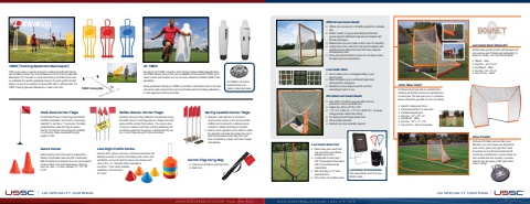 Spring Loaded Corner Flags%u2022 Available in sets with four or six flags to orient just the corners or the corners and the midfield, and comes with or without ground sockets for reliable anchoring on the pitch %u2022 Used on most regulation soccer fields to outline the perimeter and mark the location for corner kicks Spring loaded corner flags that %u201cgive%u201d when contacted by a player and return upright automaticallyLow/High Profile ConesGreat for drills, games, and races. Coaches and teachers will definitely see tons of uses for these large profile cones. Soft and flexible, cones can stack for super easy storage. Each cone is 6%u201dH x 11%u201d diameter. Sold in package of one dozen. *Cone carrier available separately, it will hold up to 70 cones.Reflex Soccer Corner FlagsOrienting corners for flag installation and perimeter lining, the Reflex Soccer Corner Flags play an integral part in the game and this set gets the job done. The corners serve not only as markers on the field, but they additionally act as reference points for the players. Included with this set are 4 corner flags along with 4 ground sockets. Kwik Goal Corner FlagsThe 6B1404 Premier Corner Flags meet NCAA and NFHS standards. The Premier Corner Flags stand 60%u201d H and has a 1%u201d round pole. The black weighted bases make this flag all-surface friendly. The Premier Corner Flags are available in red or pink. Single assembled flag pole weight: 8.5 lbs.Game ConesEasily haul the cone to the court or playing field thanks to the flexible, latex-free PVC construction. With the ability to be stacked, the cone can be placed on top of other ones and tucked away in between each use. Sets = 5 cones. Available 12%u201d, 18%u201d, 28%u201d or 36%u201dAir TOM%u00aeSay hello to Air TOM%u00ae, a member of the Training Opponent Mannequin%u00ae family. Air TOM%u00ae features many of the same capabilities as the standard TOM%u00ae, yet is easier to store and transport as it can be easily inflated and deflated (inflator sold separately).During goalkeeper training, Air TOM%u00ae can provide a safer barrier when in its base, and can be easily removed and used as a blocking pad for bumping goalkeepers in more aggressive training simulation.TOM%u00ae (Training Opponent Mannequin)TOM can be used in a variety of ways to complement both skill training and conditioning drills. The most standard use for the Training Opponent Mannequin is for free kick or corner kick training, but TOM can be used as a defender for specific goalkeeper training, for spacing drills for field players, as well as an obstacle for speed drills with or without a ball. The 16B27 Training Opponent Mannequin is made in the USA. TOM%u00ae Training DollyAir TOM%u00ae is all-surface friendly thanks to its rubber-coated steel base.Corner Flag Carry Bag%u2022 Carries corner flags or coaching sticks%u2022 Black OnlyLacrosse Goal (BowLAX)Get that extra goal for practice with Bownet%u2019s fullsize Lacrosse goal. Portable and lightweight, it%u2019s perfect for camps, clinics and the backyard.%u2022 Weight - 25lbs%u2022 Bag Size - 48 x 10 x 8%u2022 Box Weight - 30lbs%u2022 Box Size - 50 x 10 x 9%u2022 Set-up Time: - 80secHalo (Bow-Halo)The Bownet Lacrosse Halo is a portable freestanding net that fits around any manufacturers%u2019 lacrosse goal. The Halo gives you a 3%u2019 protective barrier around the goal with no clips or brackets.%u2022 Ideal for Camps and Clinics%u2022 Recommended for U14 and under%u2022 Portable backyard goal%u2022 Bag Size - 53%u201d x 10%u201d x 9%u201d%u2022 Box Weight - 36lbs%u2022 Box Size - 55%u201d x 11%u201d x 10%u201d%u2022 Set-up Time: - 85 sec (2 people)Bow CreaseAll Bownet Portable Lacrosse Men%u2019s and Woman%u2019s, arcs and creases are designed to work on turf, grass or the gym floor. Great for practice and youth tournaments and fit around any manufacturers%u2019 Lacrosse Goal. No tools needed and sets up easily in seconds. Good for any age group: youth, high school, club or college.Official Lacrosse Goals%u2022 Official-size lacrosse net is NCAA%u00ae specified for collegiate play.%u2022 Powder coated 13-gauge steel tubing and flat steel ground supports withstand tough play and impacts with the ball and players.%u2022 Braided knot-less net is made of 6mm nylon for durability.%u2022 Lacing rods on the inside front, rear ground supports and uprights securely attach the net to the frame using the included lacing cord.%u2022 Heavy-duty ground anchors ensure the net stays in place throughout games and practices.Portable Lacrosse Goals%u2022 6%u2019H x 6%u2019W x 7%u2019D official size goal with 4mm net (Club-V4) or 3mm net ( B100-V4 ).%u2022 Folded size: 48%u201dH x 47%u201dW x 13%u201dD. %u2022 1.75%u201d O.D. ( Club-V4 ), 1.5%u201d O.D. ( B100-V4 ), 16 gauge orange powder-coated steel tubing.%u2022 Pre-strung net with full perimeter hem%u2022 Carrying strap included.%u2022 Improved one-time assembly required.Lacrosse Goal Cart%u2022 Move heavy goals easily with only one person and without damaging your field.%u2022 Constructed of heavy-duty 1 3/8%u201d OD galvanized steel tubing with a long lasting powder coated finish.%u2022 Rolls smoothly on 10%u201d semipneumatic tires.%u2022 Fits most 6%u2019 x 6%u2019 portable goals.Lacrosse Nets%u2022 Use to replace worn or damaged netting in your lacrosse goal.%u2022 Made of durable nylon to withstand tough shots during practice and games.%u2022 Braided, knot-less design keeps the net from unraveling for years of use.Lacrosse AccessoriesVisit usscproducts.com for all your athletic needs.