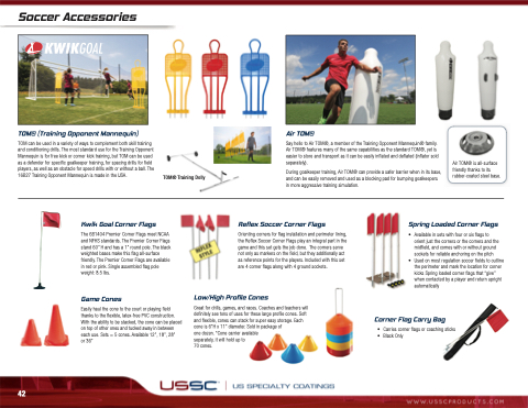 • Used on most regulation soccer fields to outline the perimeter and mark the location for corner kicks Spring loaded corner flags that “give” when contacted by a player and return upright automatically