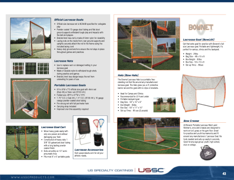 All Bownet Portable Lacrosse Men’s and Woman’s, arcs and creases are designed to work on turf, grass or the gym floor. Great
