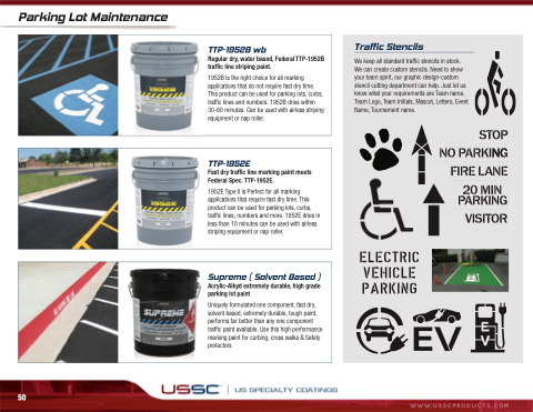1952E Type II is Perfect for all marking applications that require fast dry time. This product can be used for parking lots, curbs, traffic lines, numbers and more. 1952E dries in less than 10 minutes can be used with airless striping equipment or nap roller.